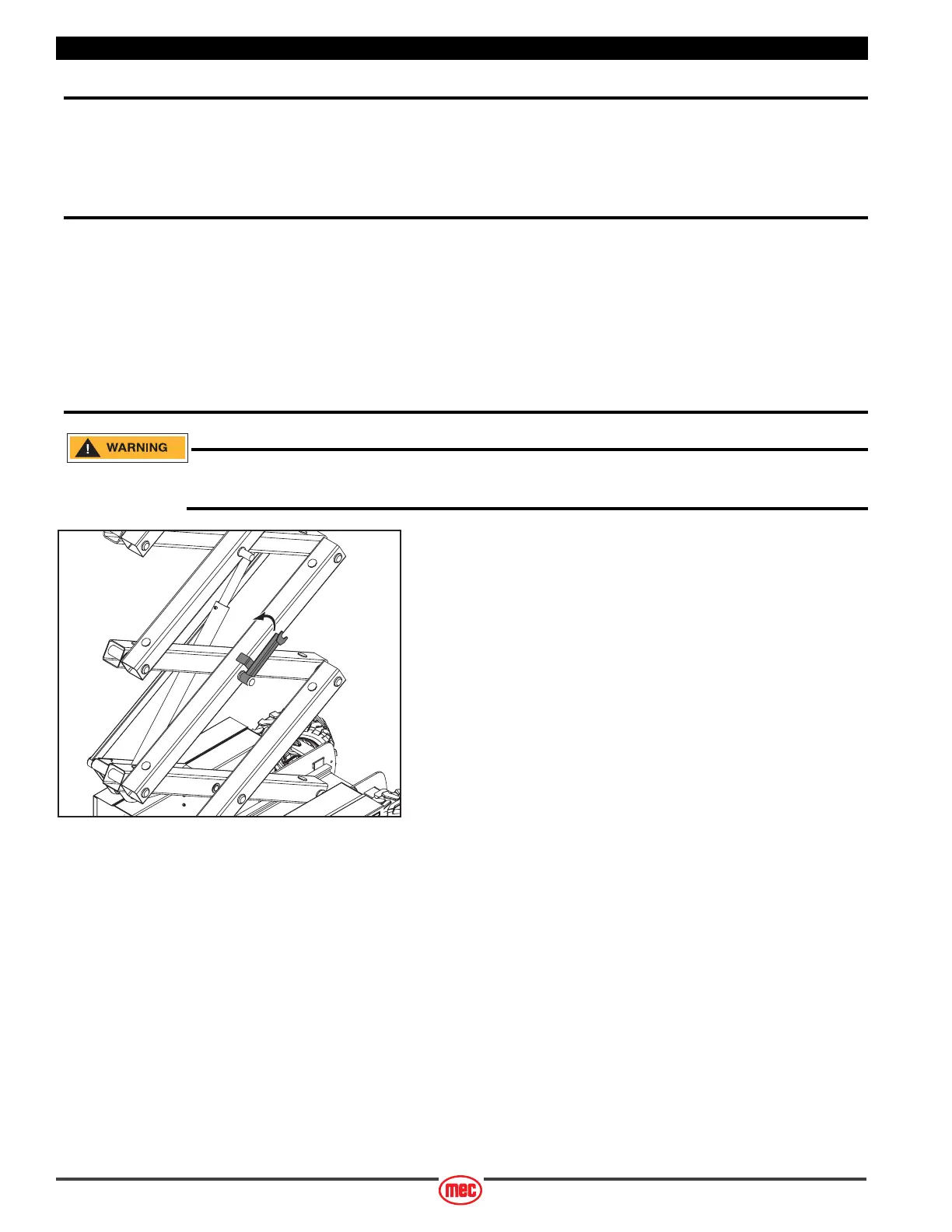 NEVER perform work or inspection on the machine with the platform elevated without first blocking