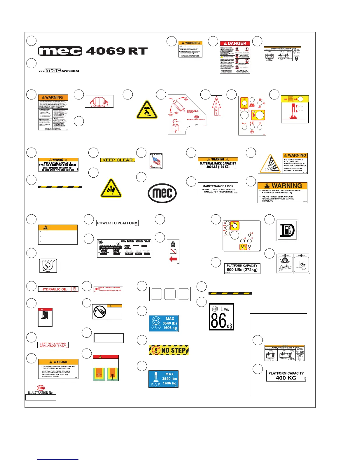 MANUFACTURED BY MEC AERIAL WORK PLATFORMS, 1401 S. MADERA AVE, KERMAN, CA 93630 USA