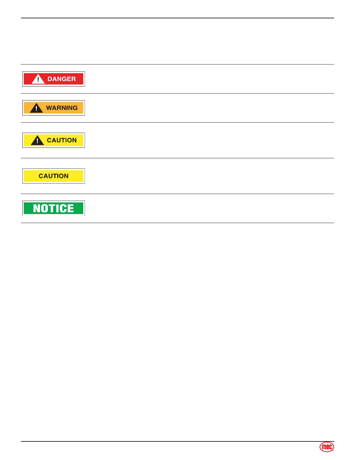 MEC manuals and decals use symbols, colors and signal words to help you recognize important