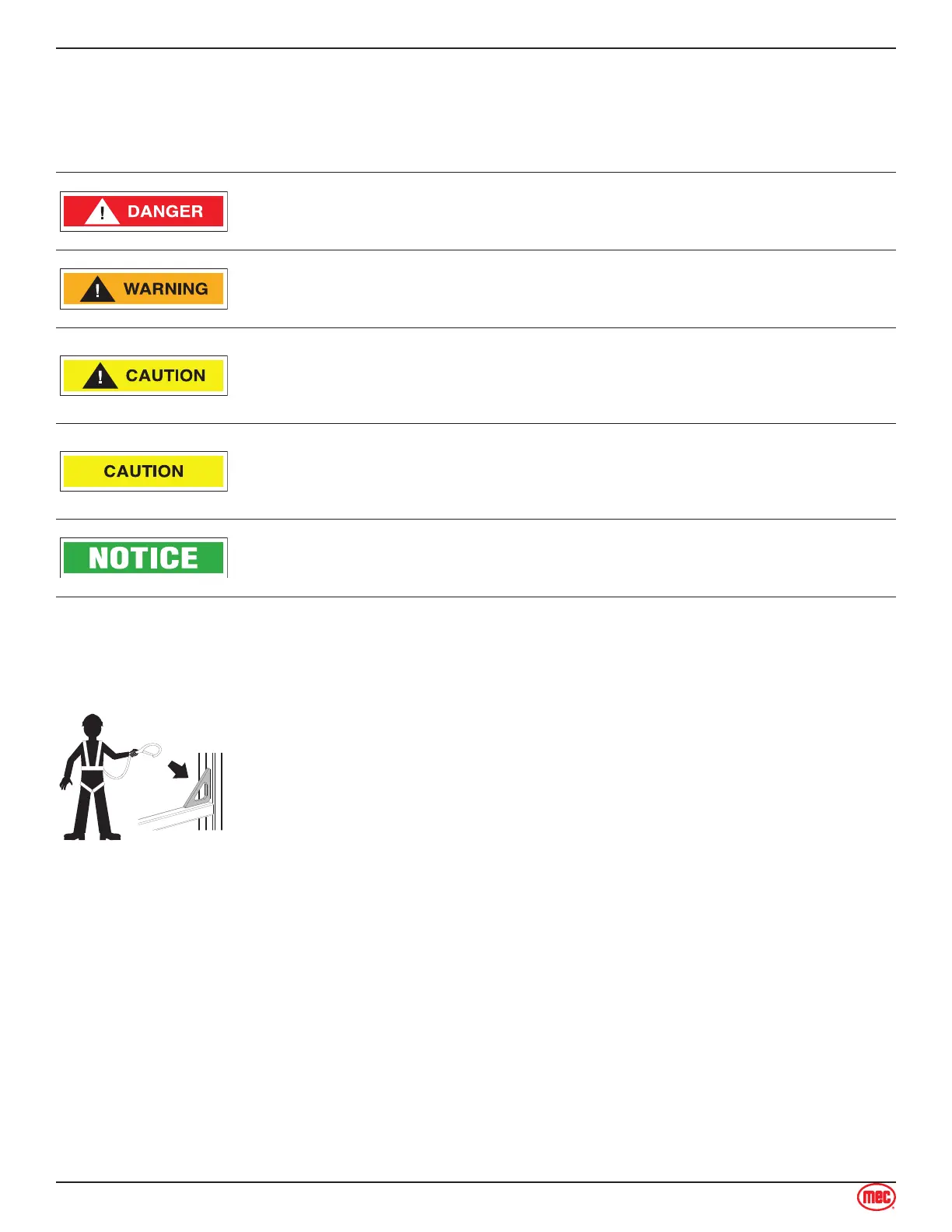 MEC manuals and decals use symbols, colors and signal words to help you recognize important