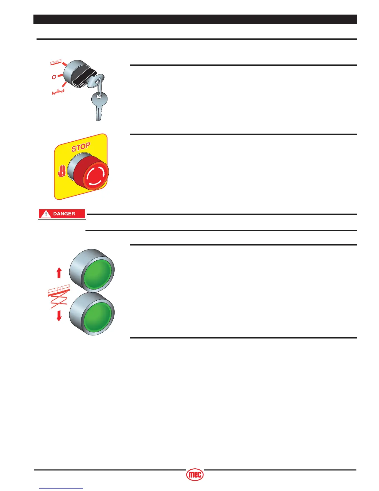 IMPORTANT—Be sure the area above the machine is clear of obstructions to allow full elevation of platform.