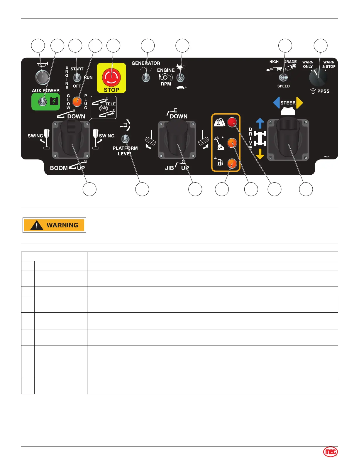 3 Start/Stop Switch Move this switch up to start engine. Press this switch down to stop engine.