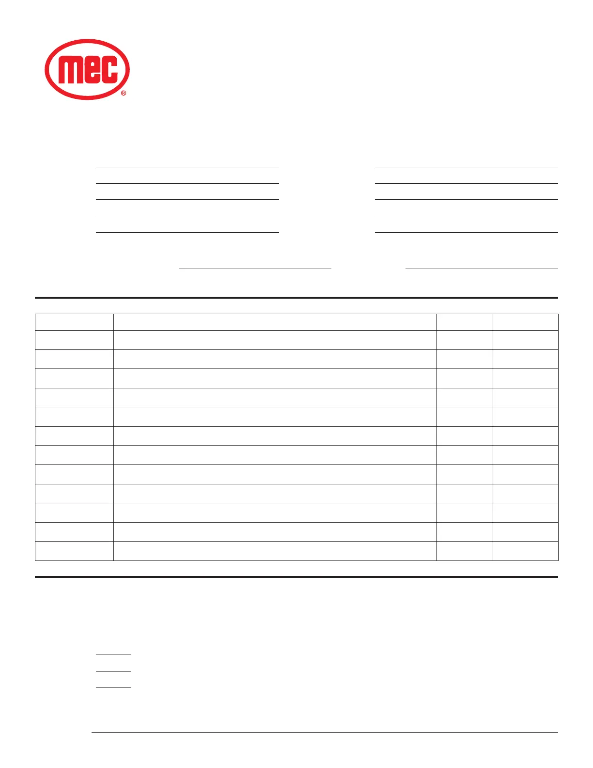 MEC Parts Order Form