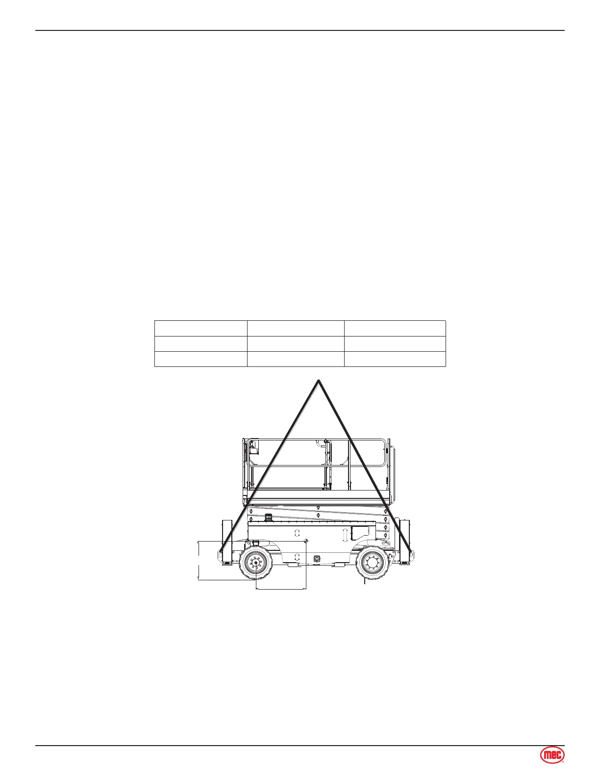 Determine the center of gravity of your machine using the table and the picture on this page.