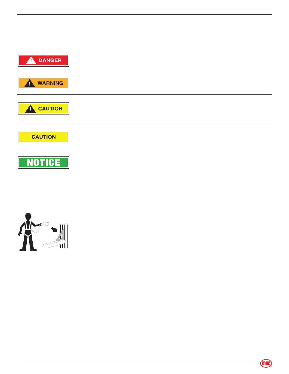MEC manuals and decals use symbols, colors and signal words to help you recognize important