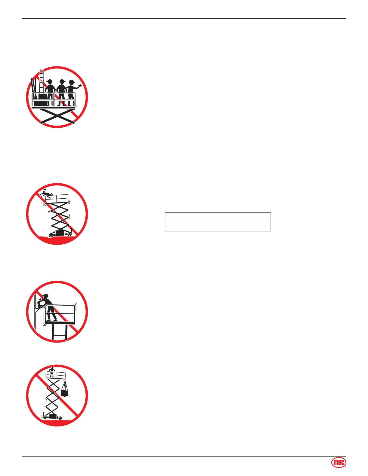 NEVER modify or alter the work platform without written permission from MEC.
