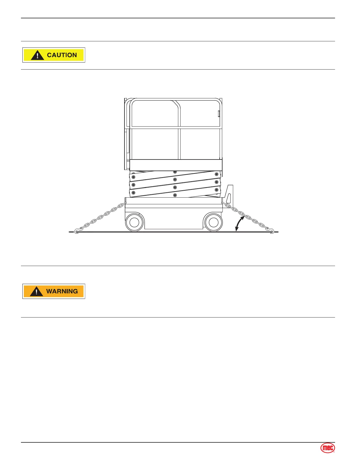 Fully lower the platform. Be sure the deck extension is retracted and the controls and component