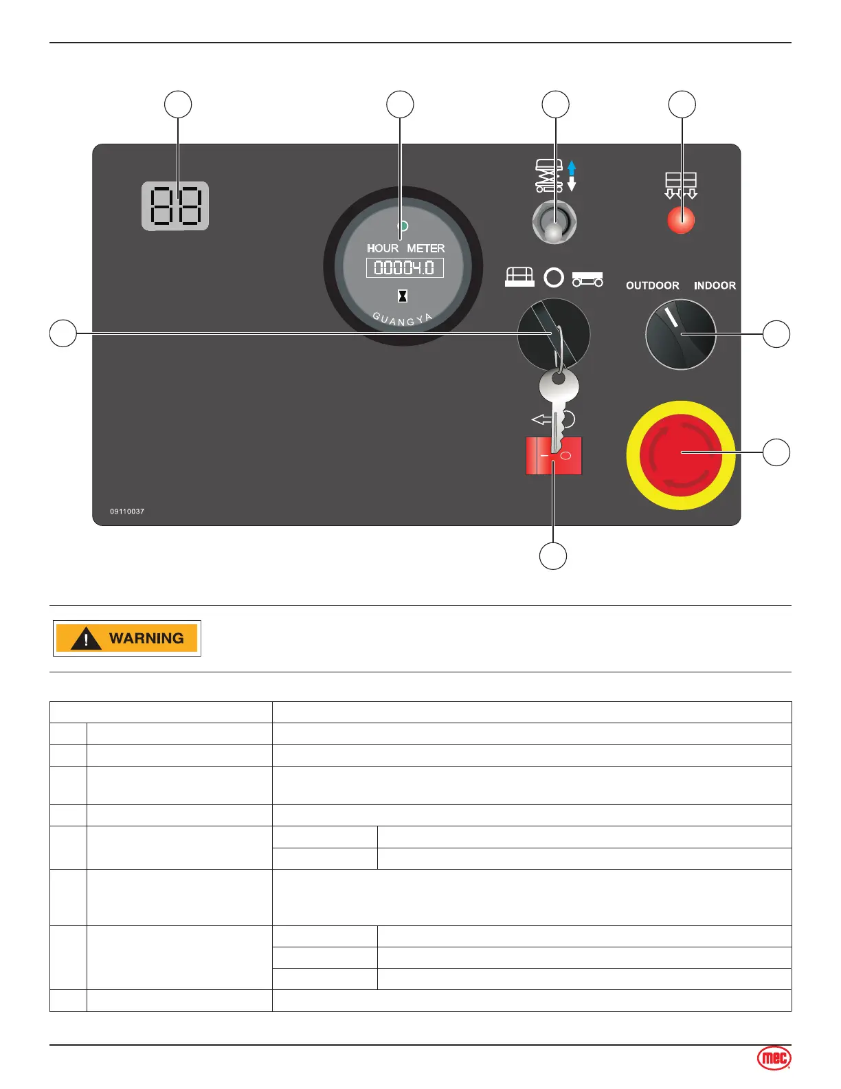2 Hour Meter The hour meter displays the number of hours the machine has operated.