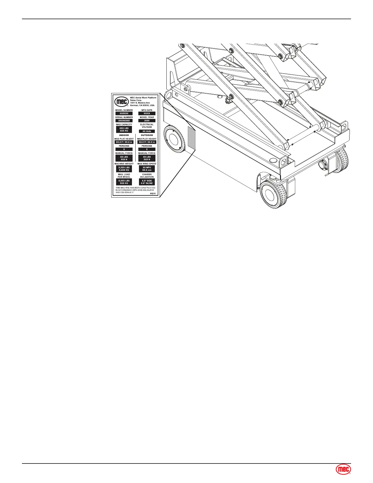 MAX. CAPACITY: The maximum safe load (material, persons + equipment) which can be correctly placed on the
