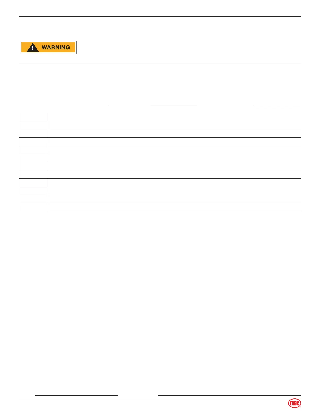 Photocopy this page for reuse. Keep inspections records up to date. Record and report all