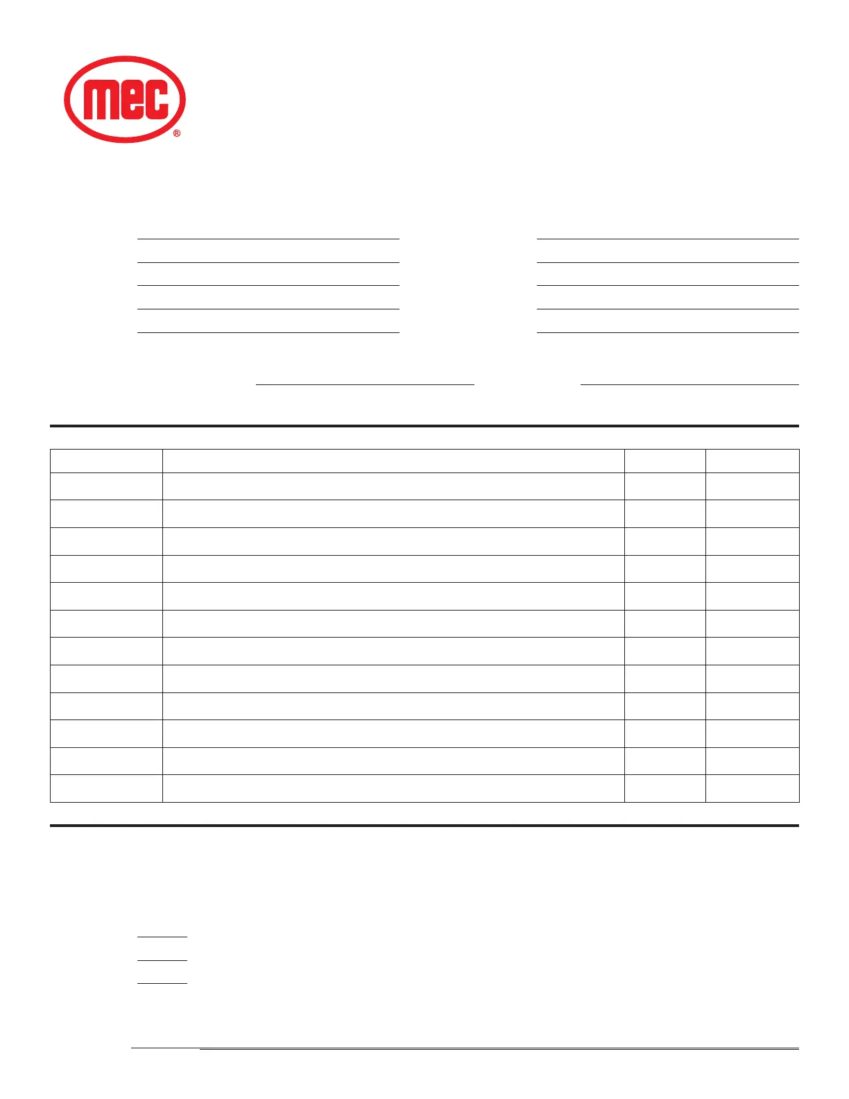 MEC Parts Order Form