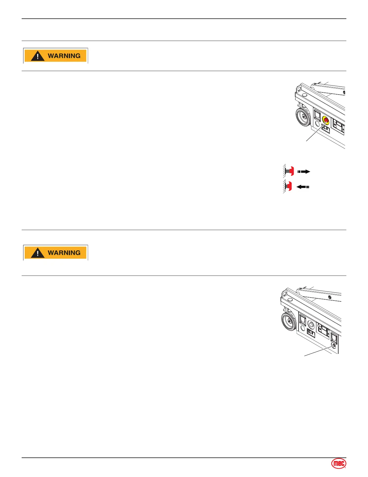 Push in the red Main Power/Lower Emergency Stop Switch button to the off