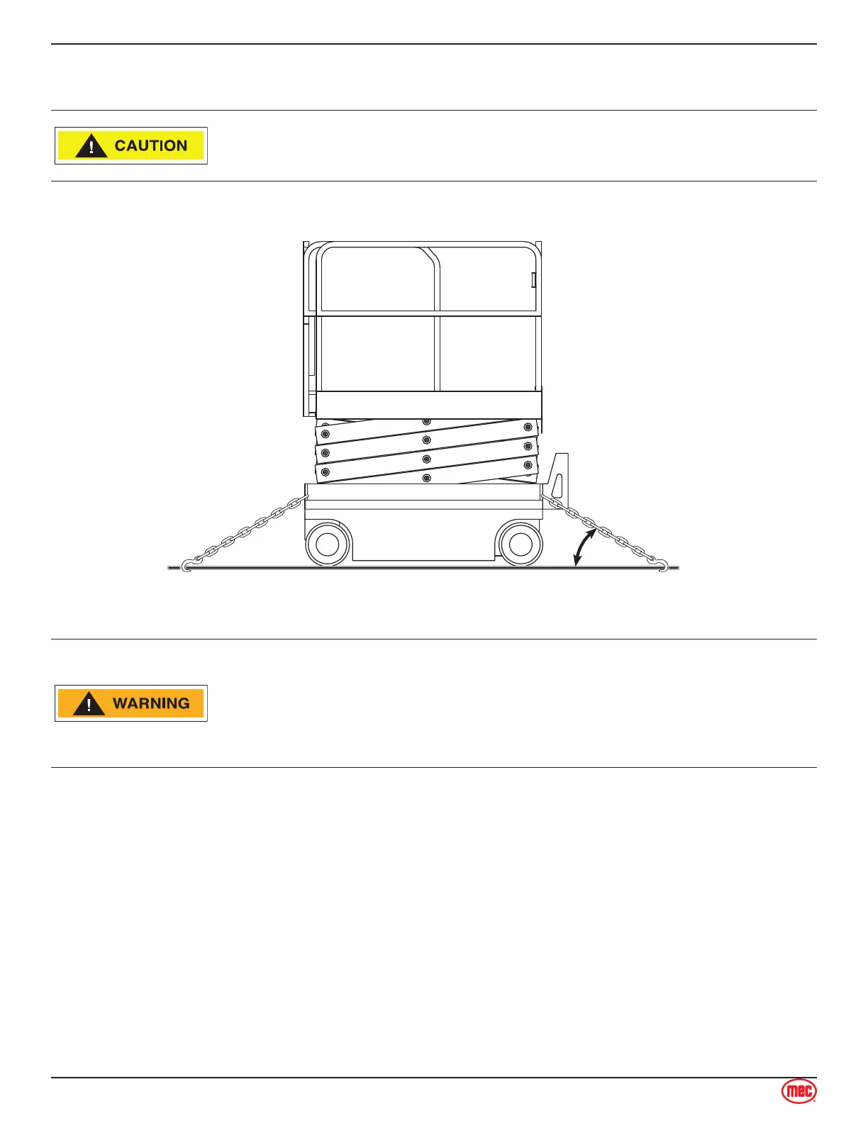 Fully lower the platform. Be sure the deck extension is retracted and the controls and component
