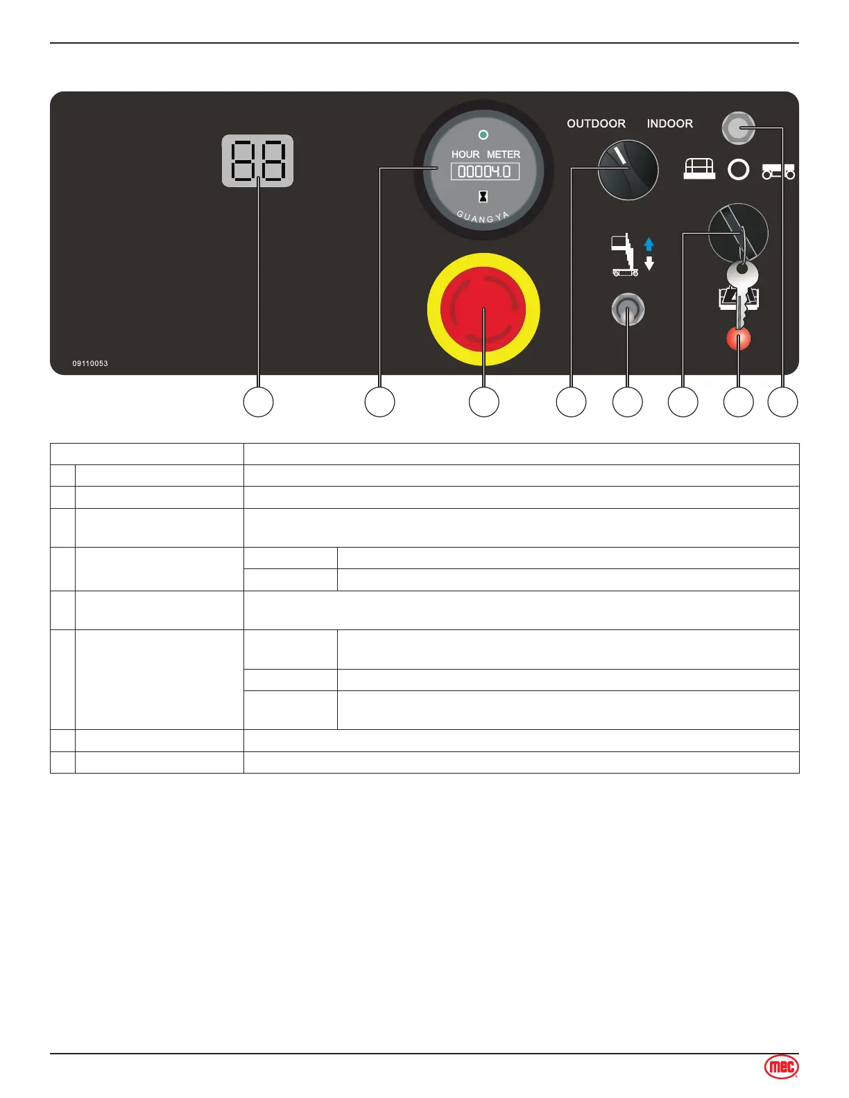 7 Overload Indicator Light Light on indicates when platform is overloaded.