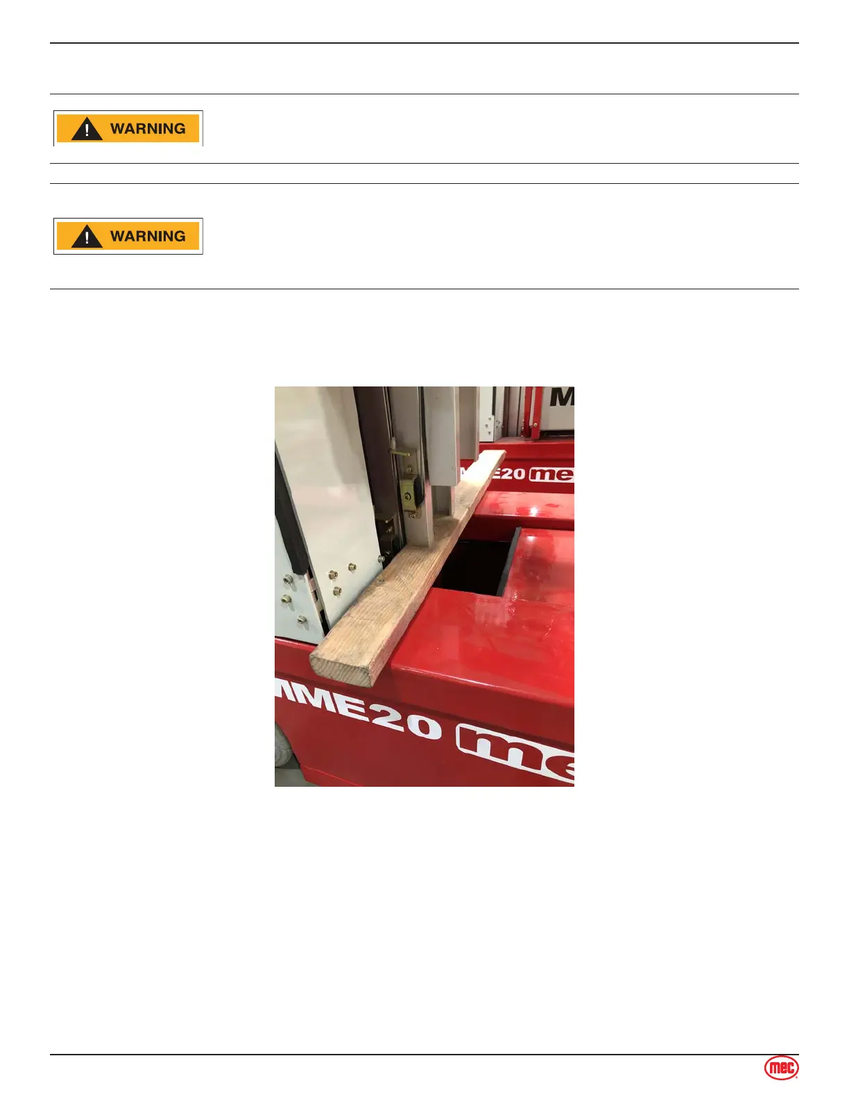 NEVER perform work or inspection on the machine with the platform elevated without first supporting