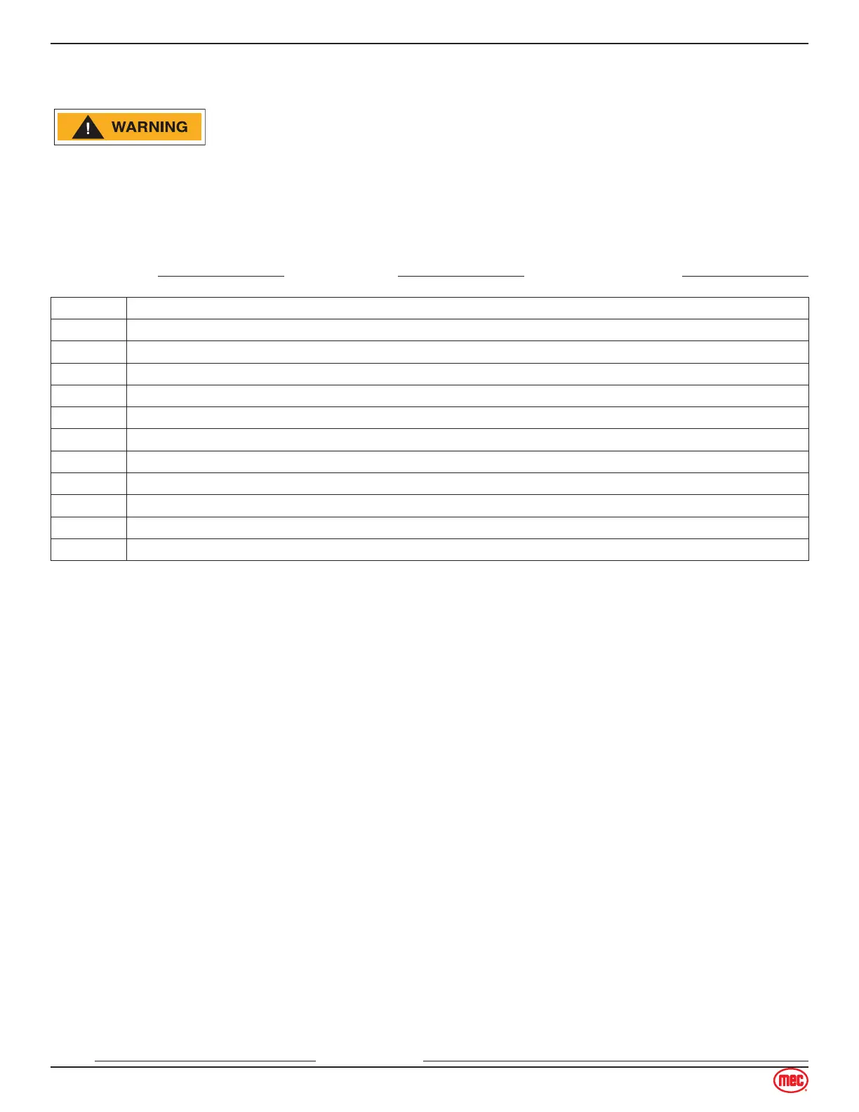 Photocopy this page for reuse. Keep inspections records up to date. Record and report all