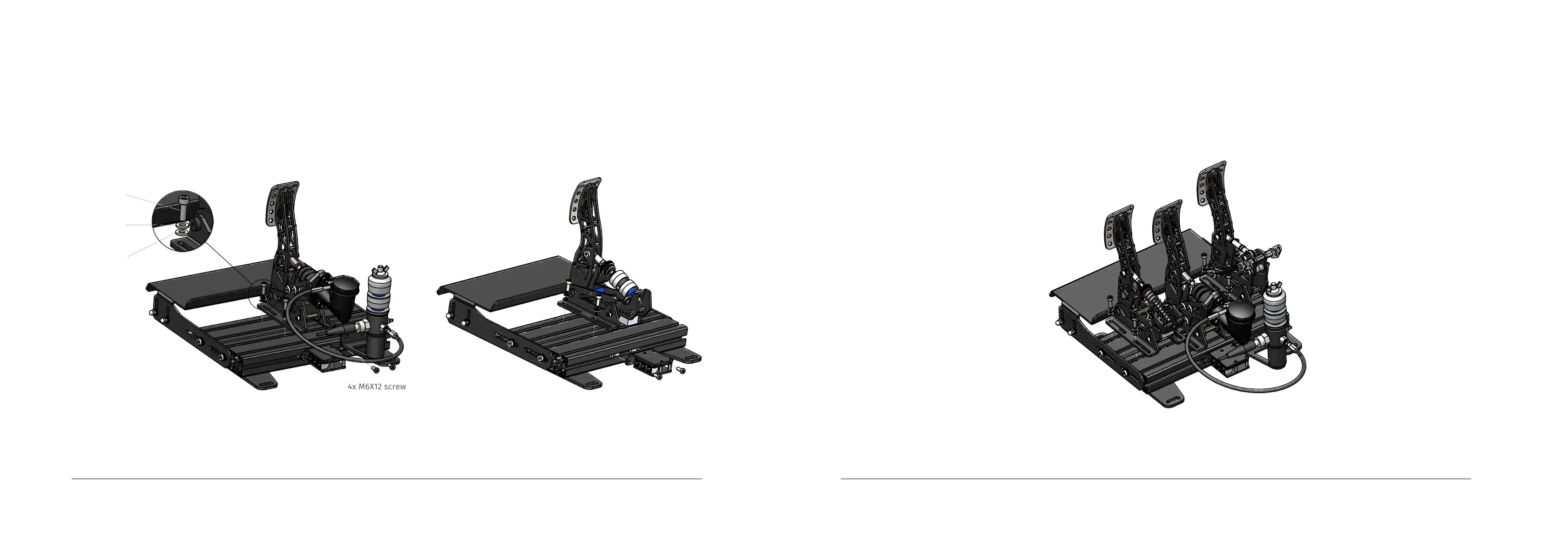 Mount the brake pedal, slave cylinder* and electronic box assembly onto the baseplate
