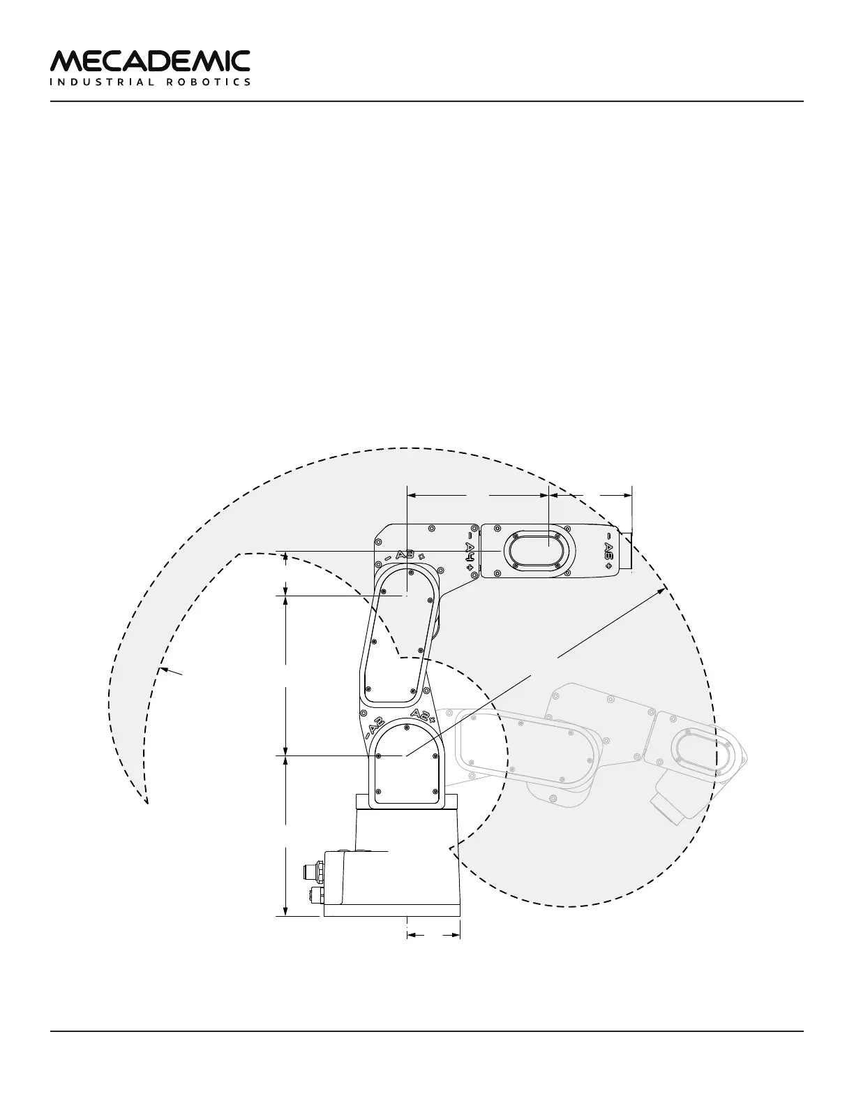 in black line. Also note that the gray zone is the area attainable by the center of the robot's wrist
