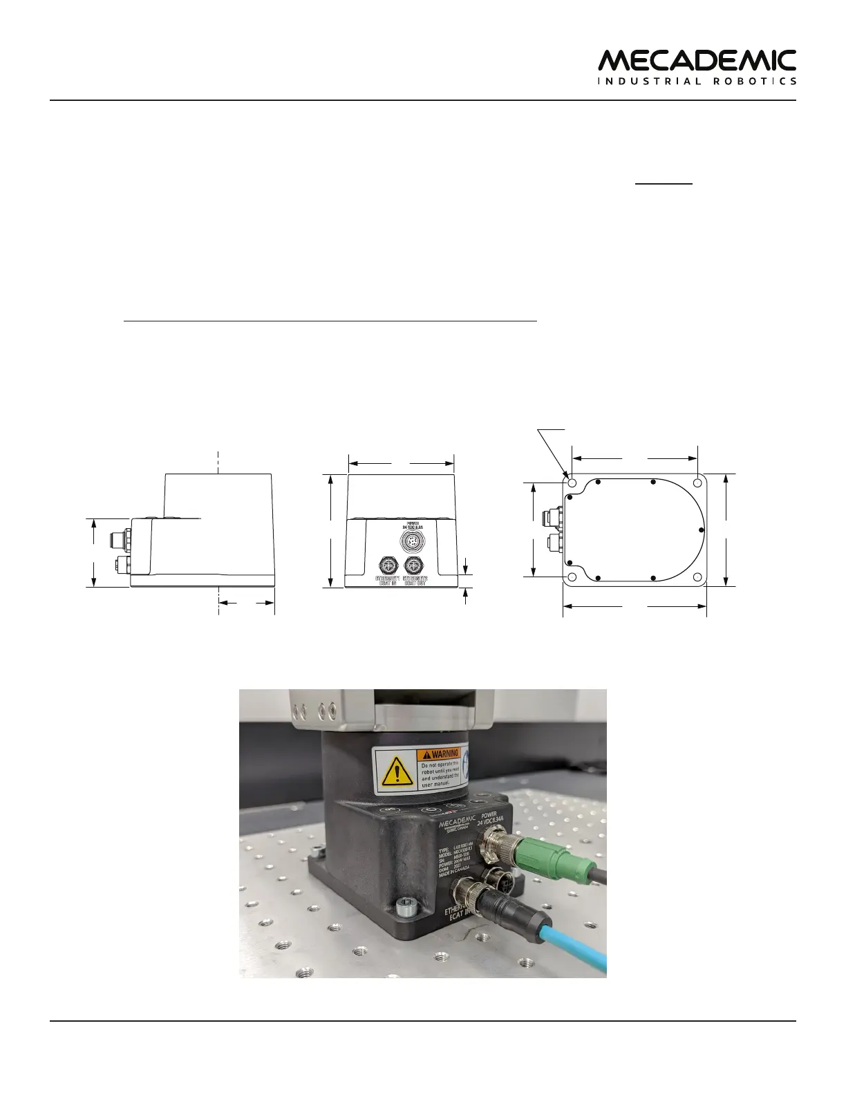 The dimensions of the robot base are shown in Figure10 and an example of installation is shown in
