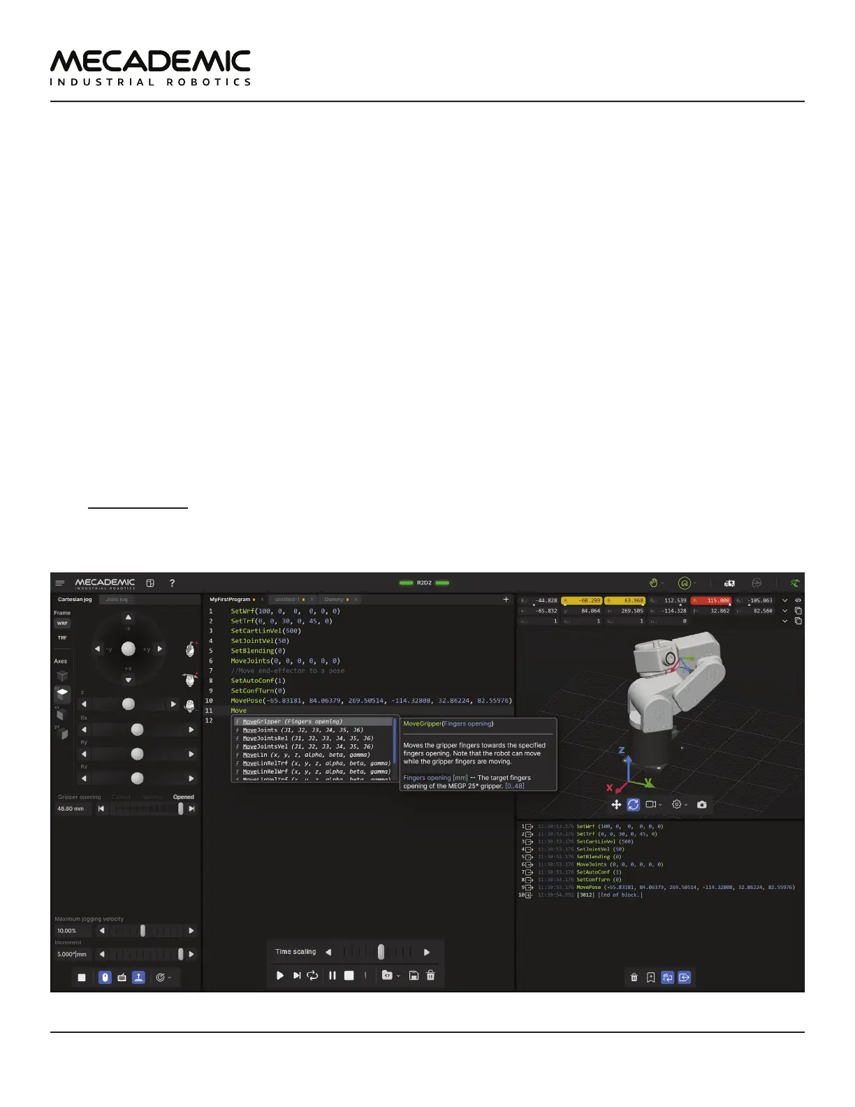 2. Meca500's web interface, called MecaPortal, should load instantaneously (Figure14). The MecaPor-