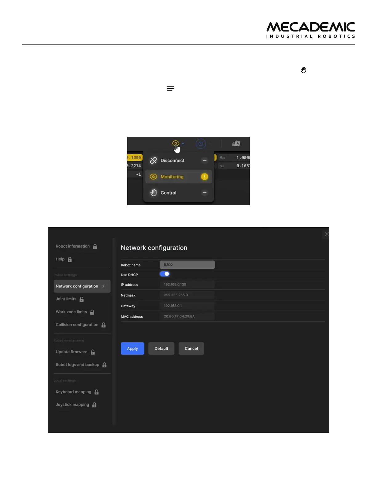 Figure16: Changing the robot's network conguration