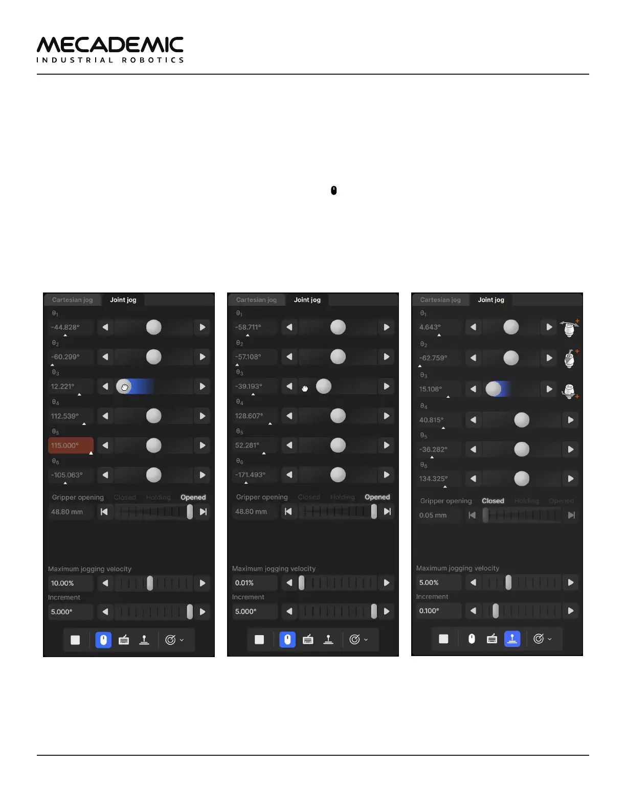 is used to interact with it (Figure21). You can also jog each joint using keyboard shortcuts, as well as a