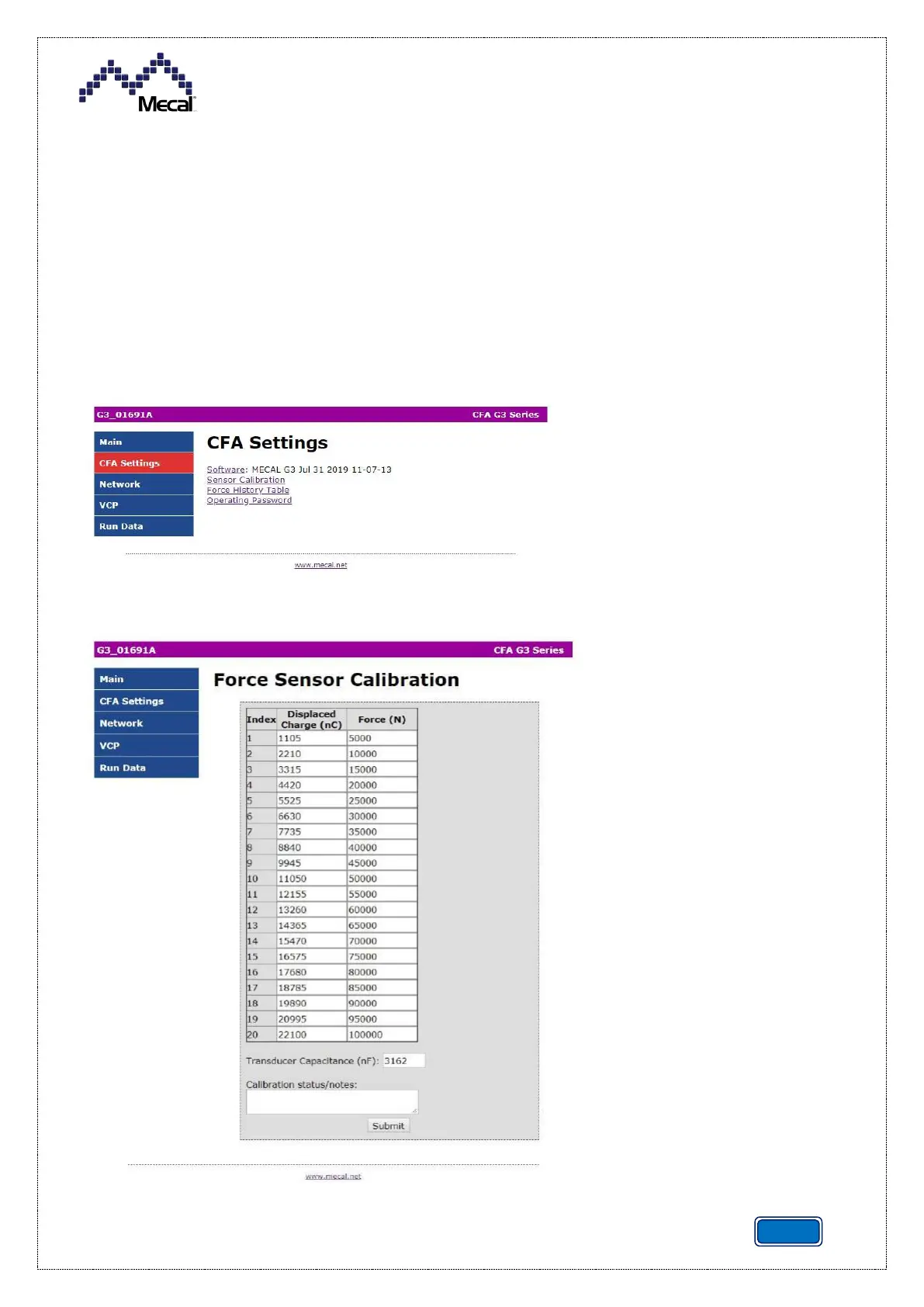 certificate can be entered in the table on the "Sensor Calibration" page by following this procedure: