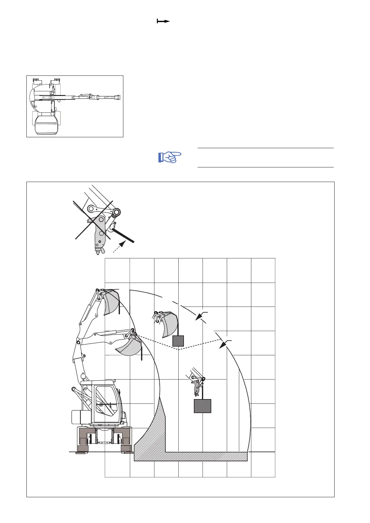 - Bucket ram always full extended with hook fixed on tool-