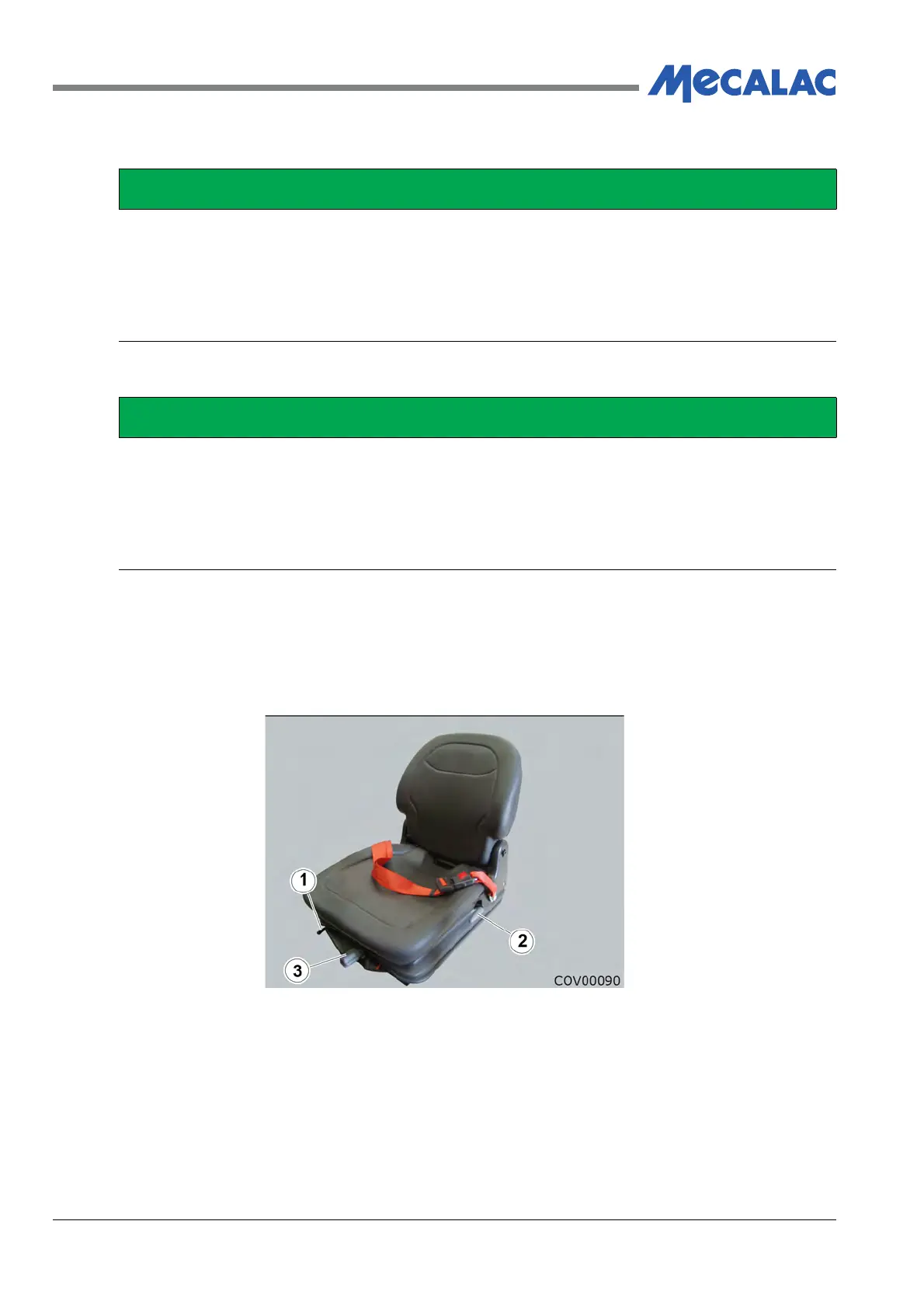 The seat is adjustable for operator comfort. The adjustments allow the seat to be moved forwards