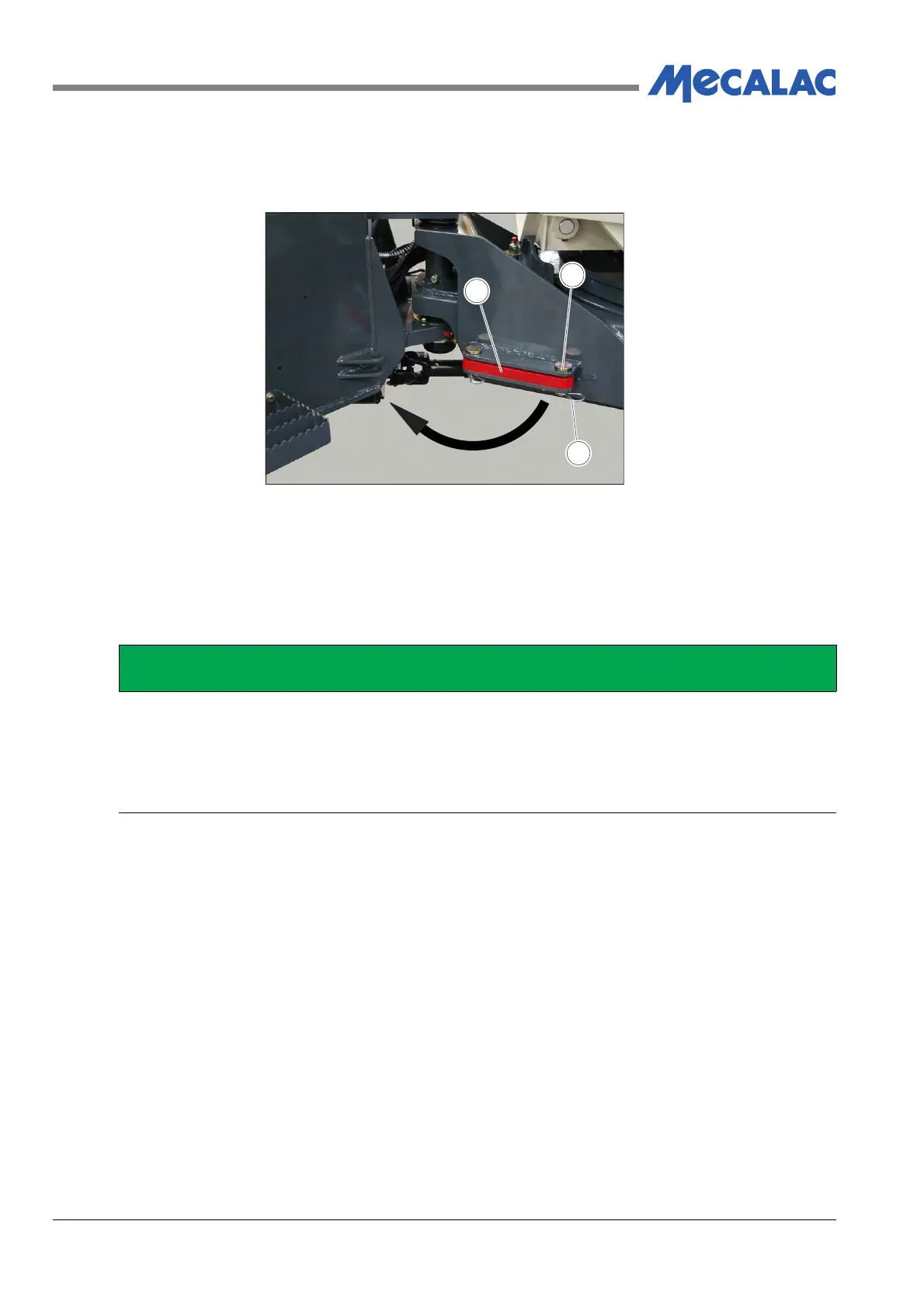 The articulation lock, Figure 5.2 prevents chassis movement when lifting the machine with a