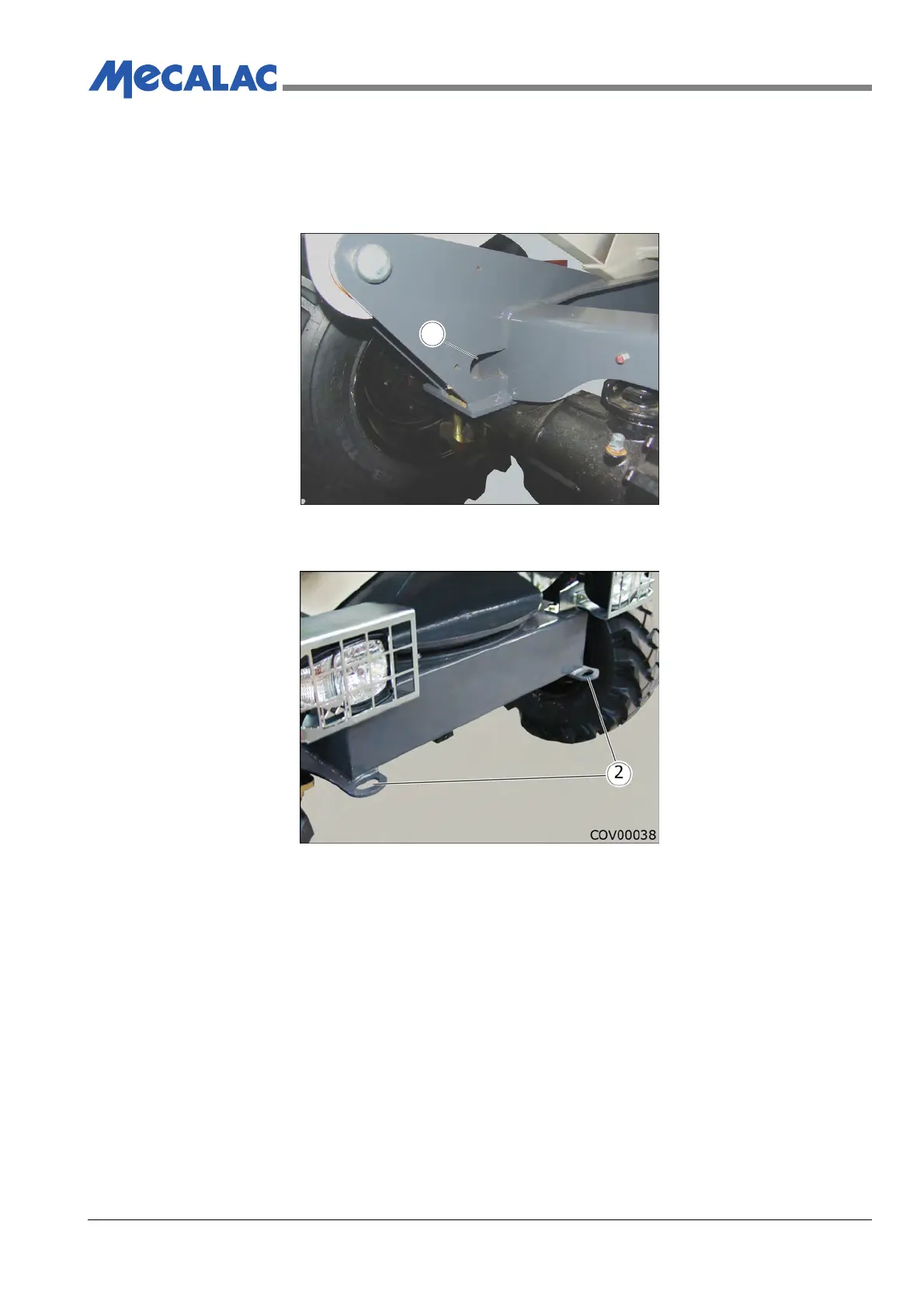 must be attached to the machine’s front tie down points (1) forward tip skip, Figure 5.3. or (2)