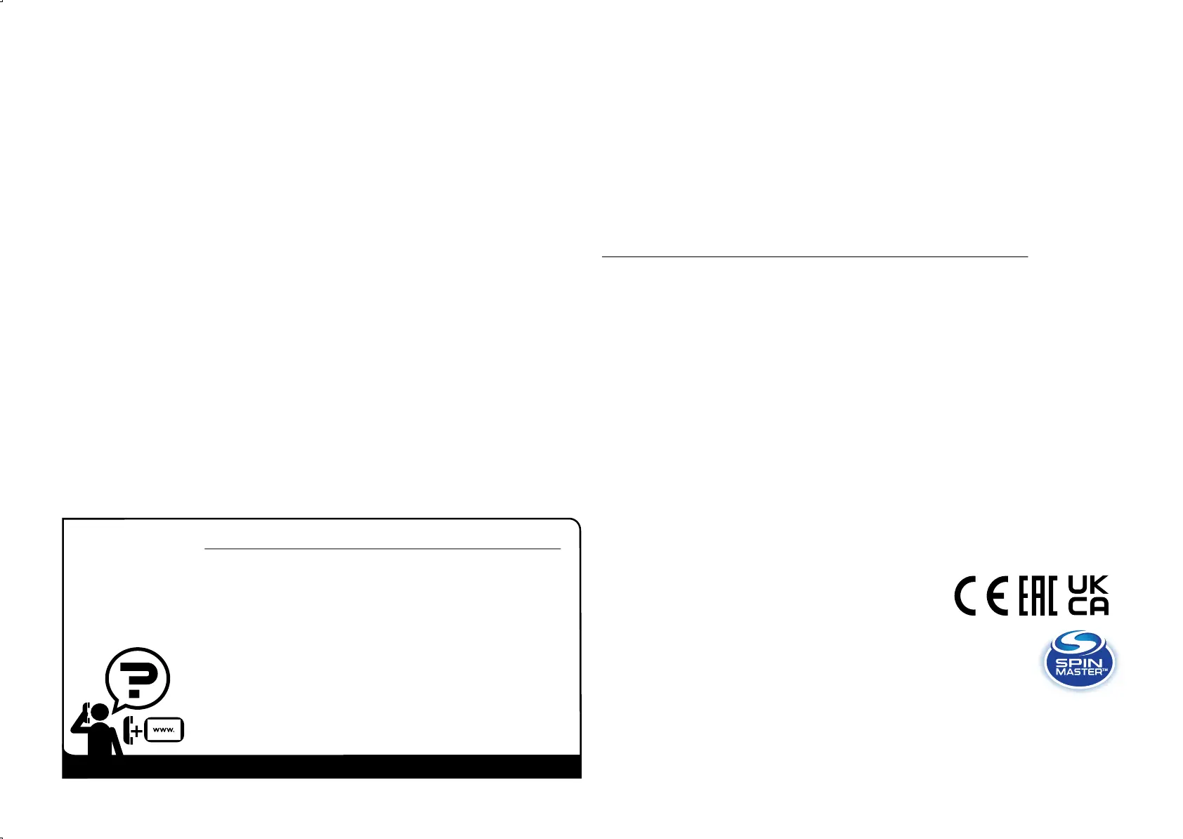 UK – 0800 206 1191, serviceuk@spinmaster.com