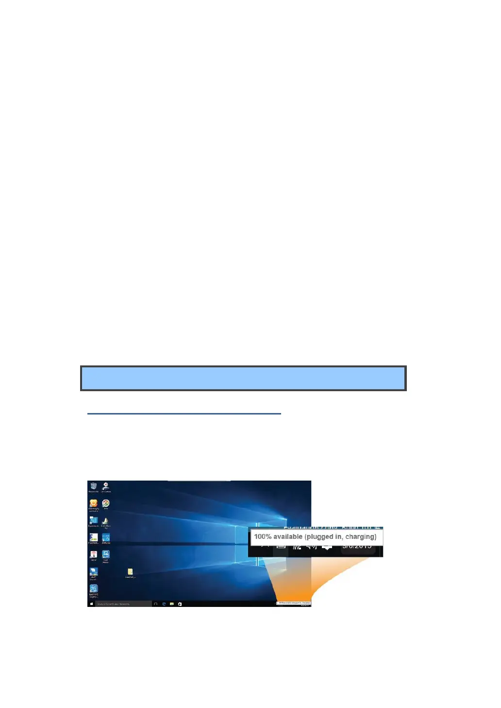 In Desktop, move the cursor to the battery icon in the taskbar. A pop-up