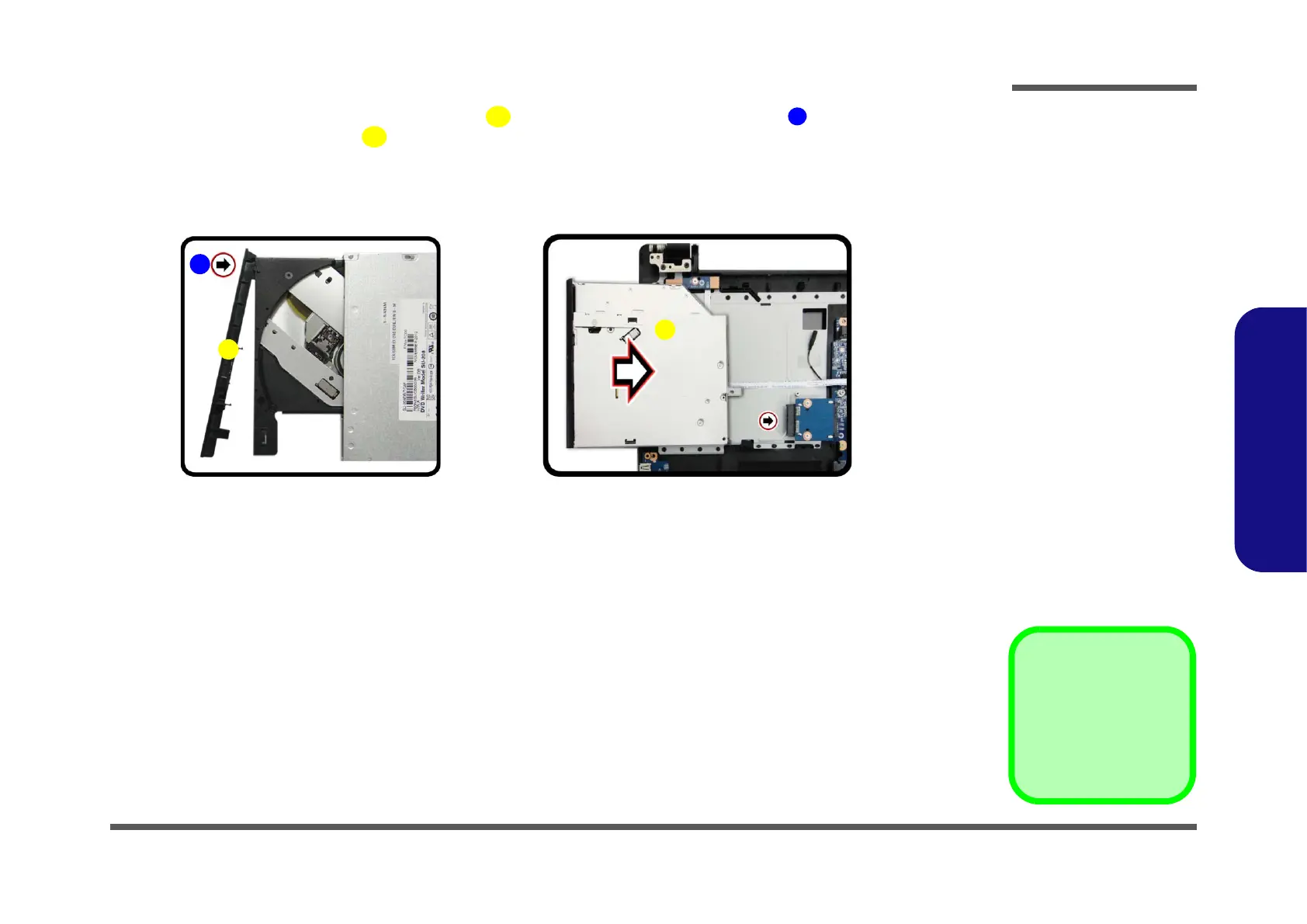 5. Reverse the process to attach the front bezel with the new optical device at point (Figure 5e).