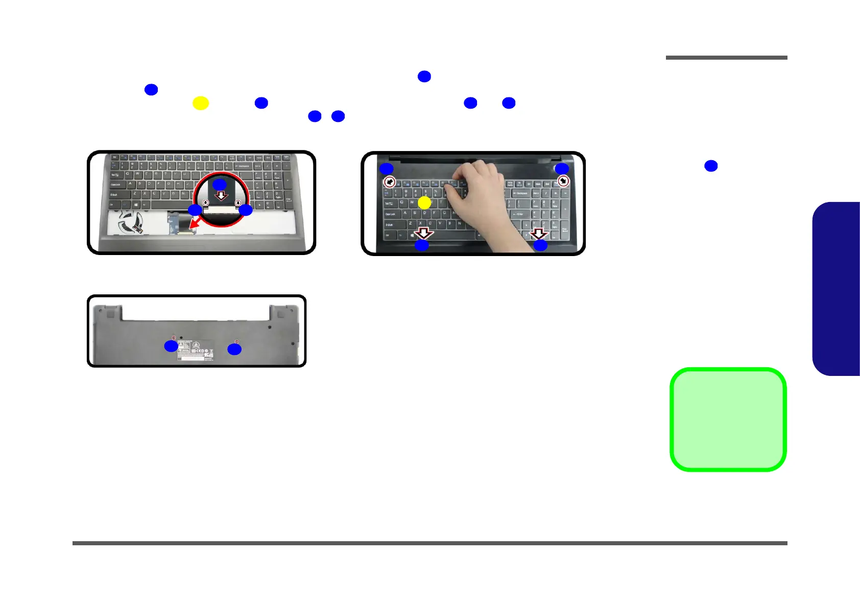 8. Turn the computer over, tighten the screws - to secure the keyboard (Figure 8f).