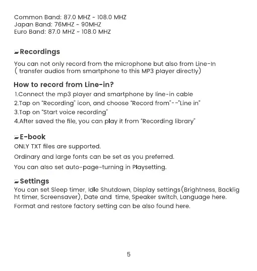MECHEN D26 - FM Radio and Recordings; FM Radio Operations; Audio Recording