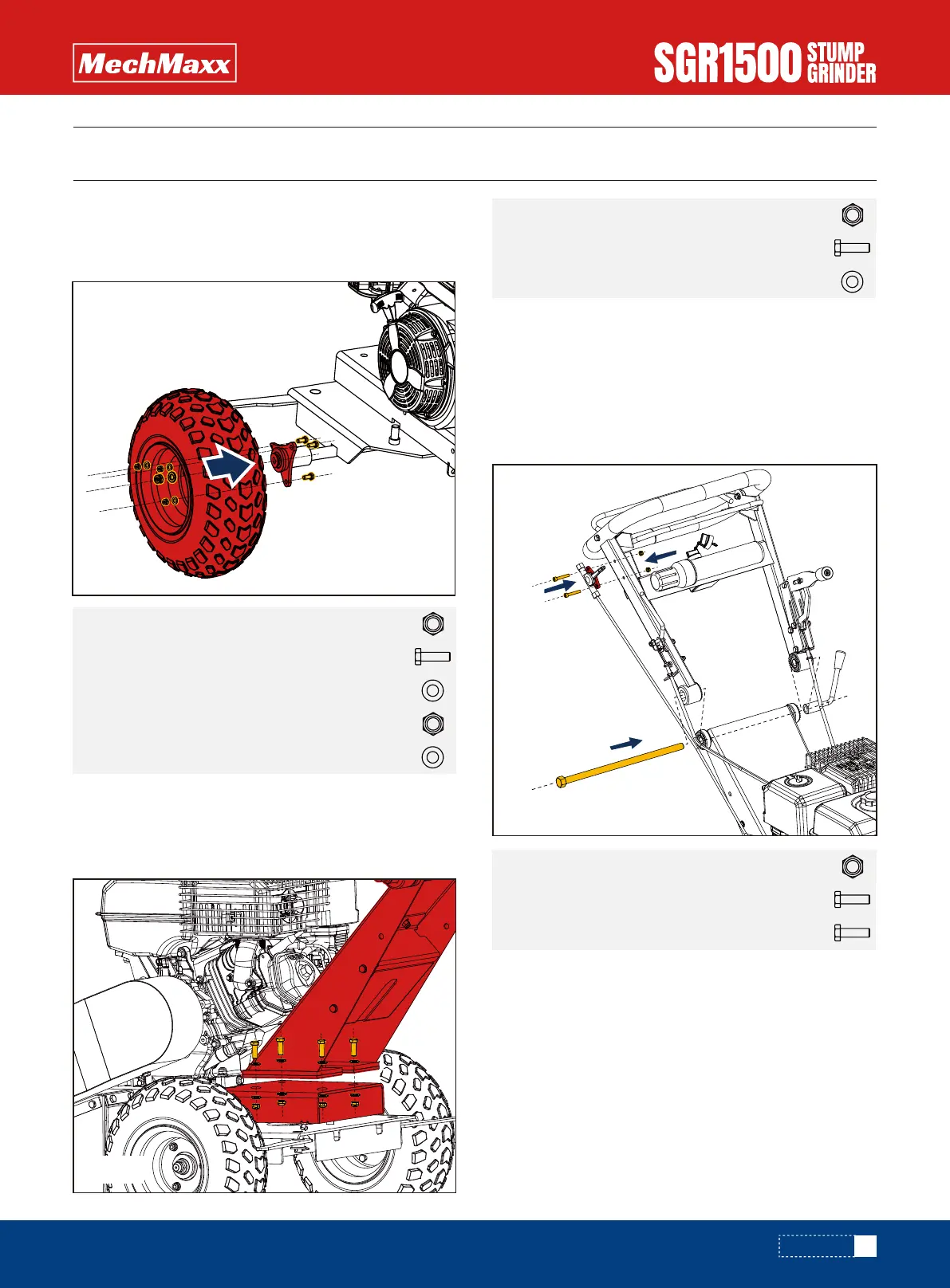 Fix the wheel on the axle with M14, M8X20 hexagonal