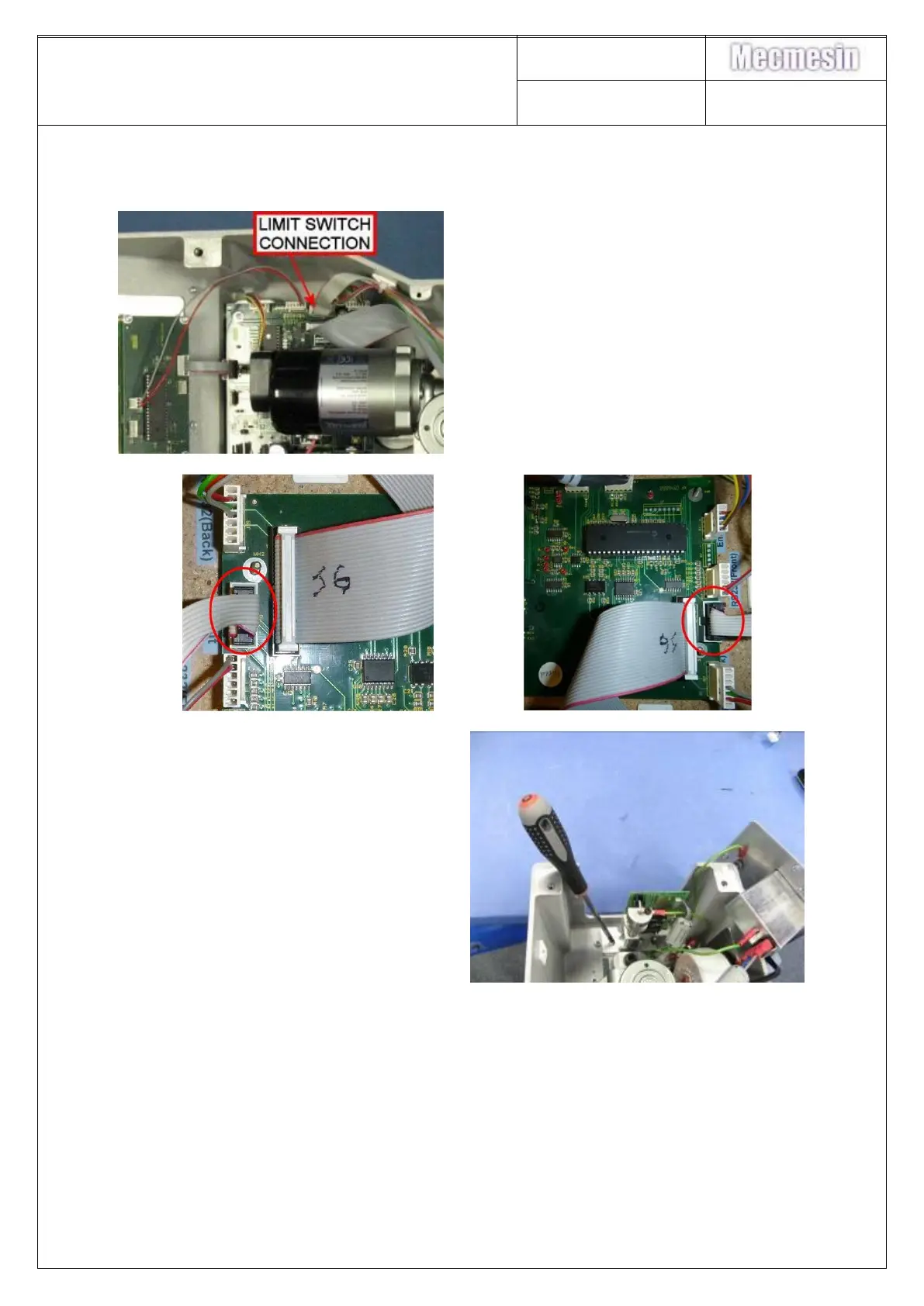 112. Unplug limit switch from PCB
