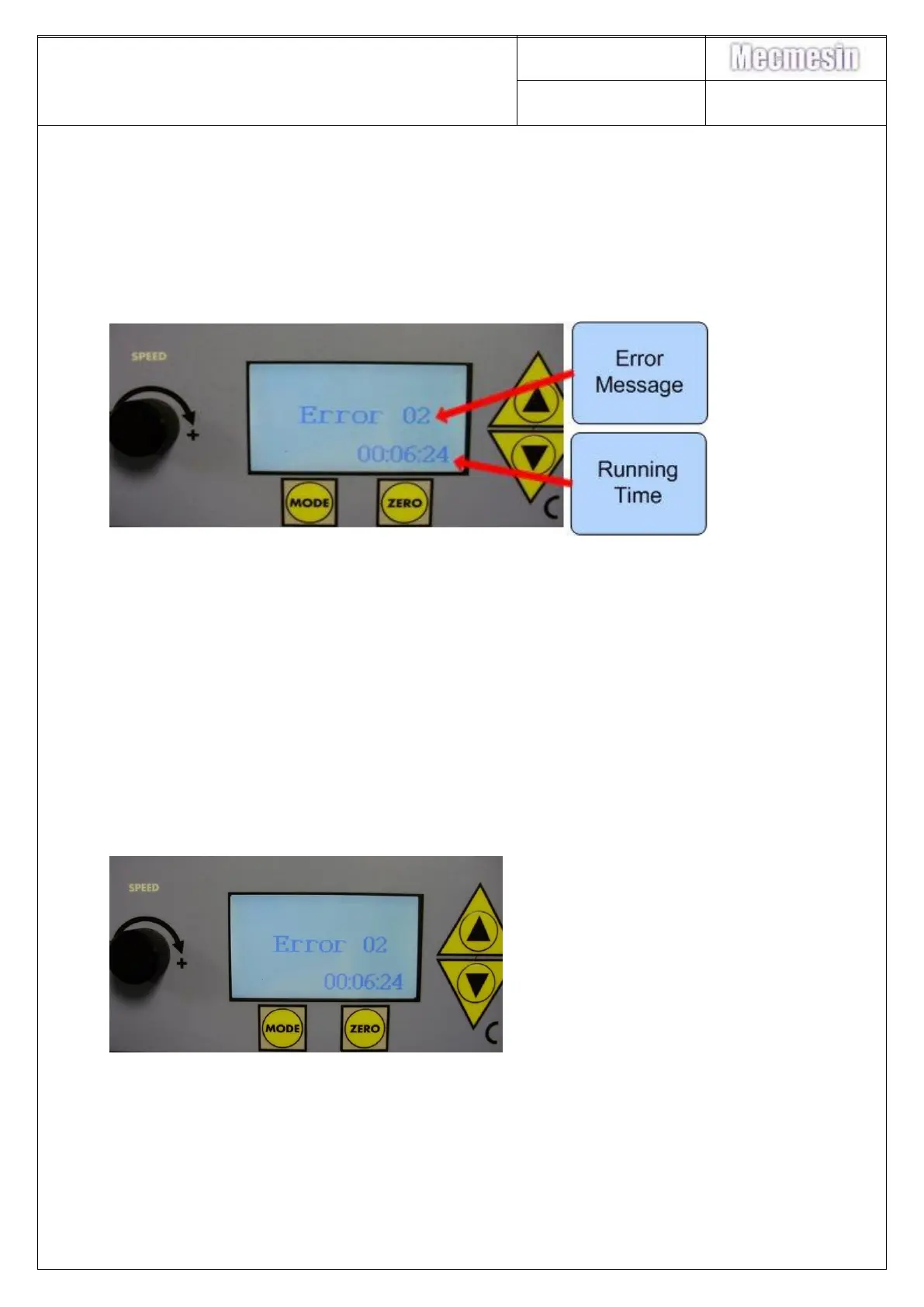 Error 02 – Motor control fault / Low mains power. - The board has tried to drive the