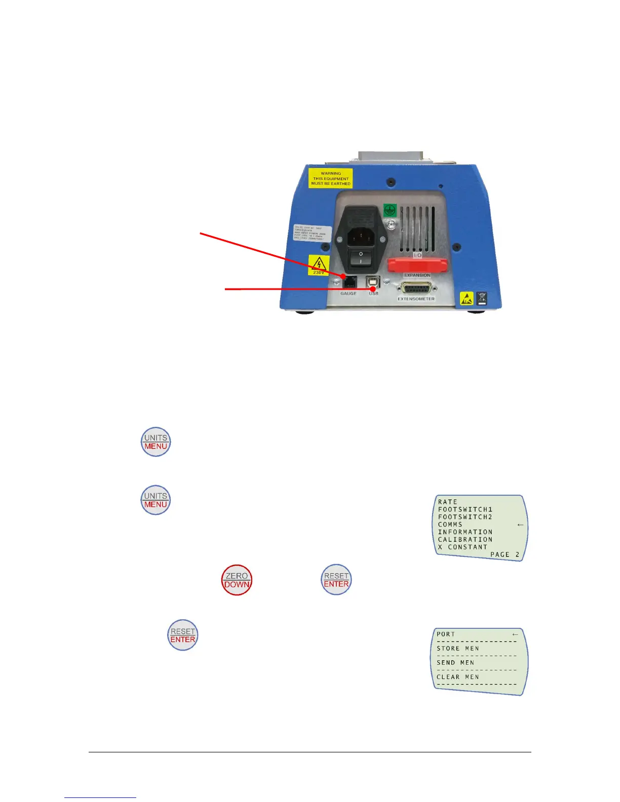 A Mecmesin AFG digital force gauge is connected to the test stand using cable part no.