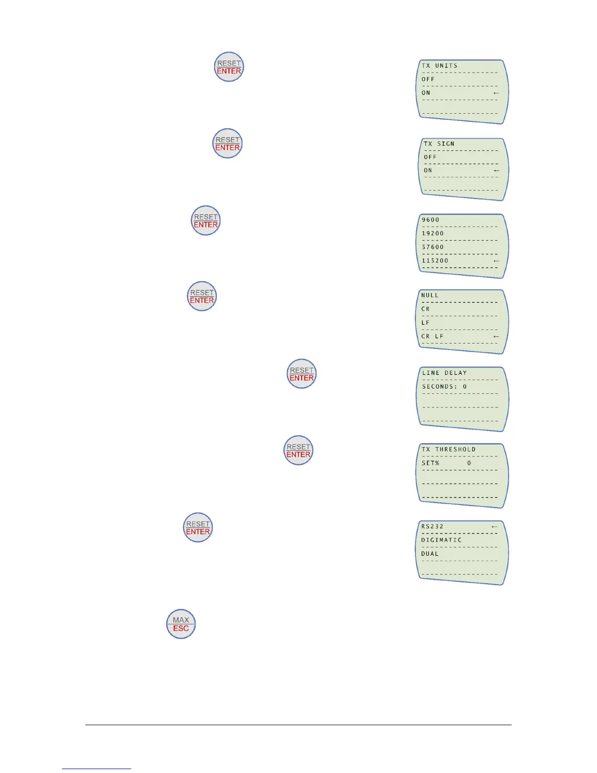 10. Ensure TX threshold is set to 0 press →