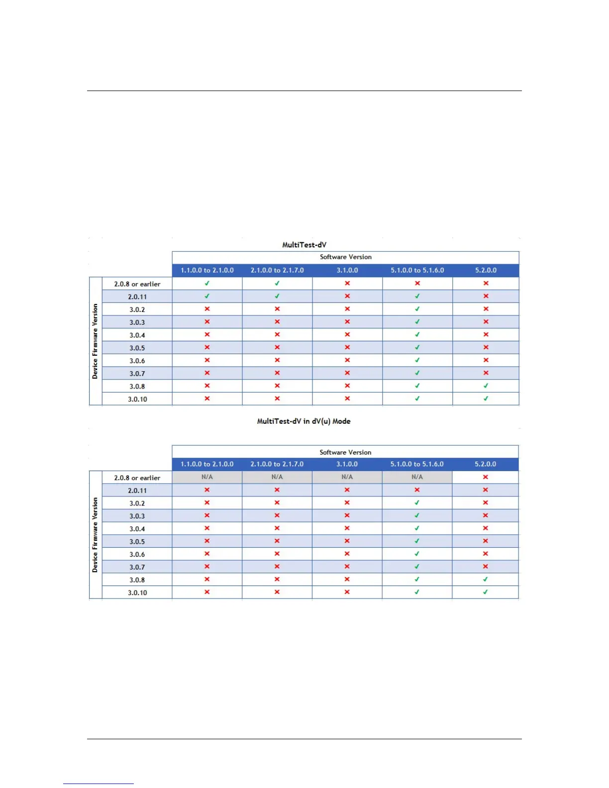 13. Test Stand Firmware/ Software Compatibility Table
