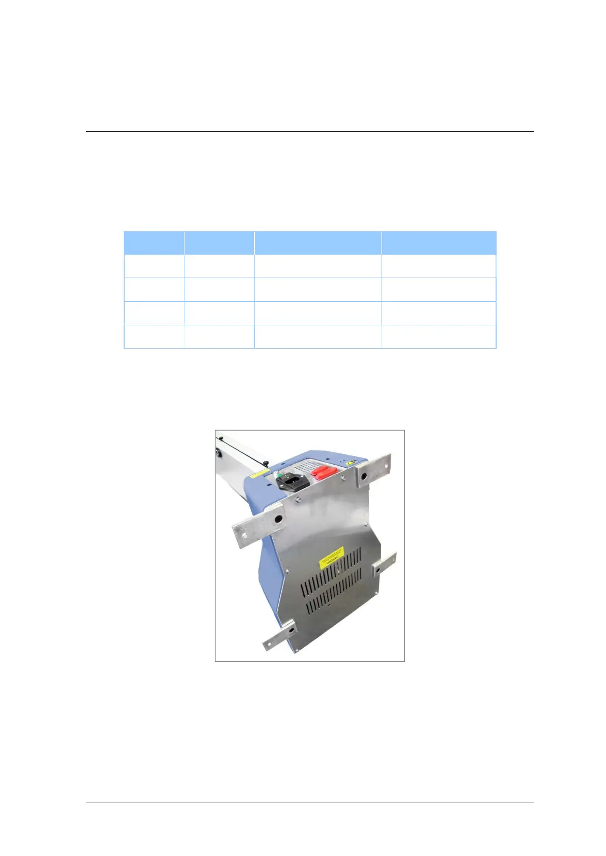 screws provided. Secure the test stand to the bench using suitable fastenings.