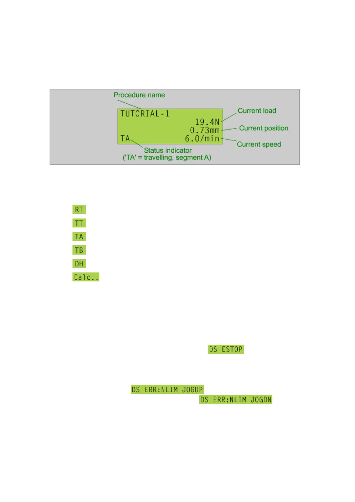 • - crosshead travelling in response to above Segment B commands