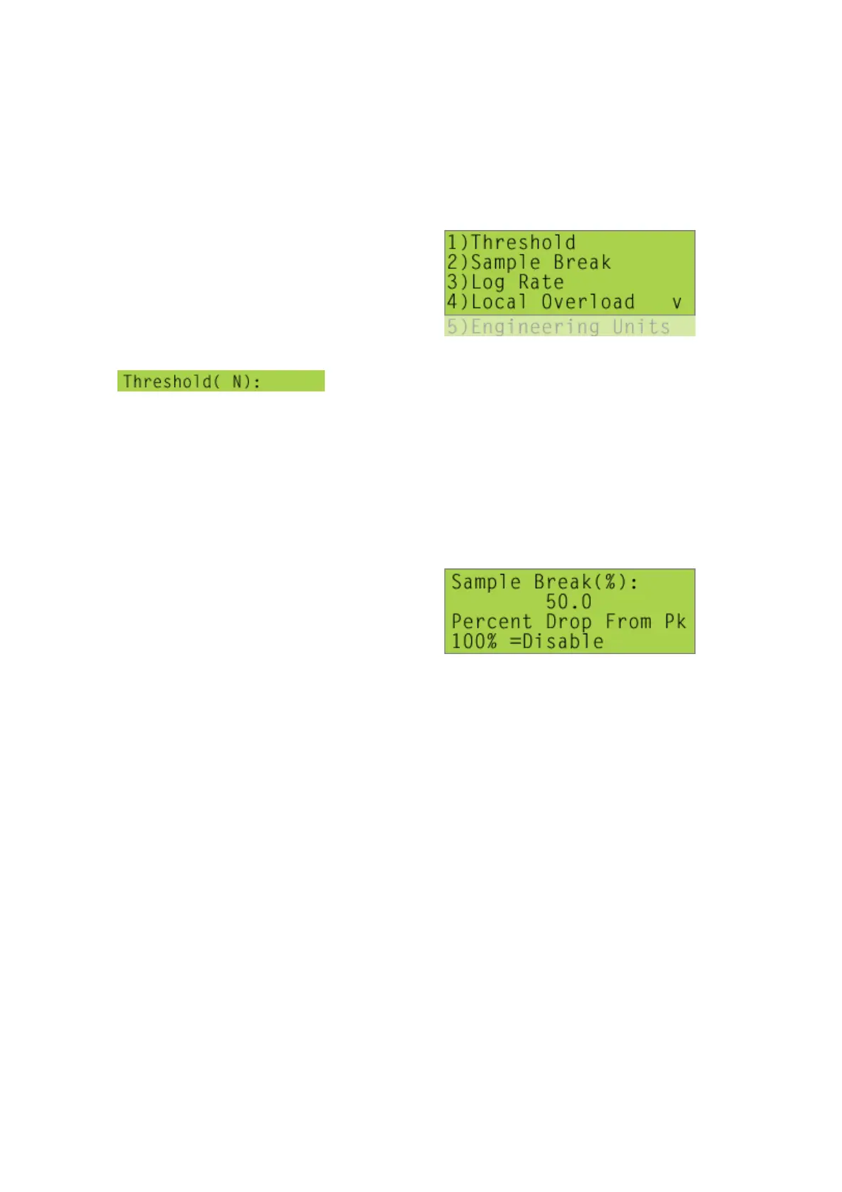 and the capacity of the testing machine can be entered. If the threshold value is set to
