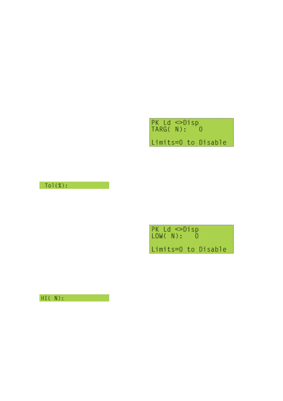 [Start/ENT], will display a new line in the Set Limits screen,