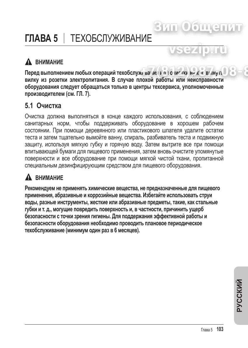 Перед выполнением любых операций техобслуживания или очистки нужно вынуть