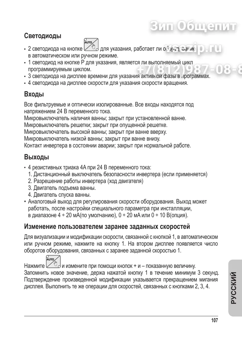 • Аналоговый выход для регулирования скорости оборудования. Выход может