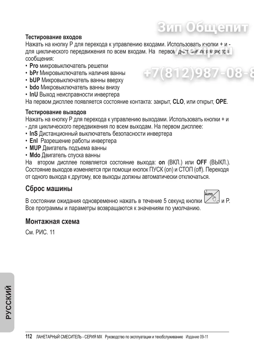 112 ЛАНЕТАРНЫЙ СМЕСИТЕЛЬ - СЕРИЯ MX Pуководство по эксплуатации и техобслуживанию Издание 09-11