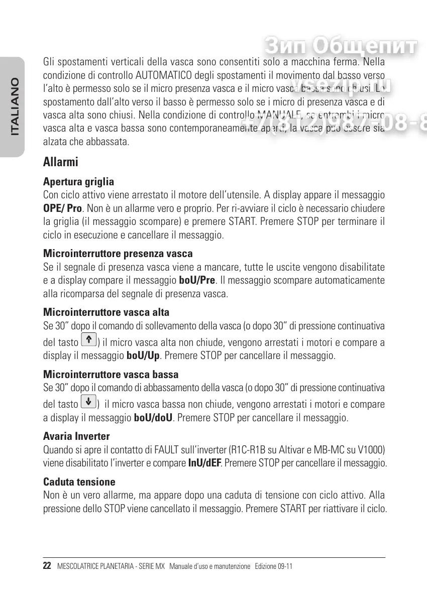 MESCOLATRICE PLANETARIA - SERIE MX Manuale duso e manutenzione Edizione 09-11
